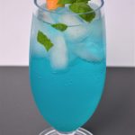- Add the ice and club soda to a glass, add the syrup and blue curaçao.
